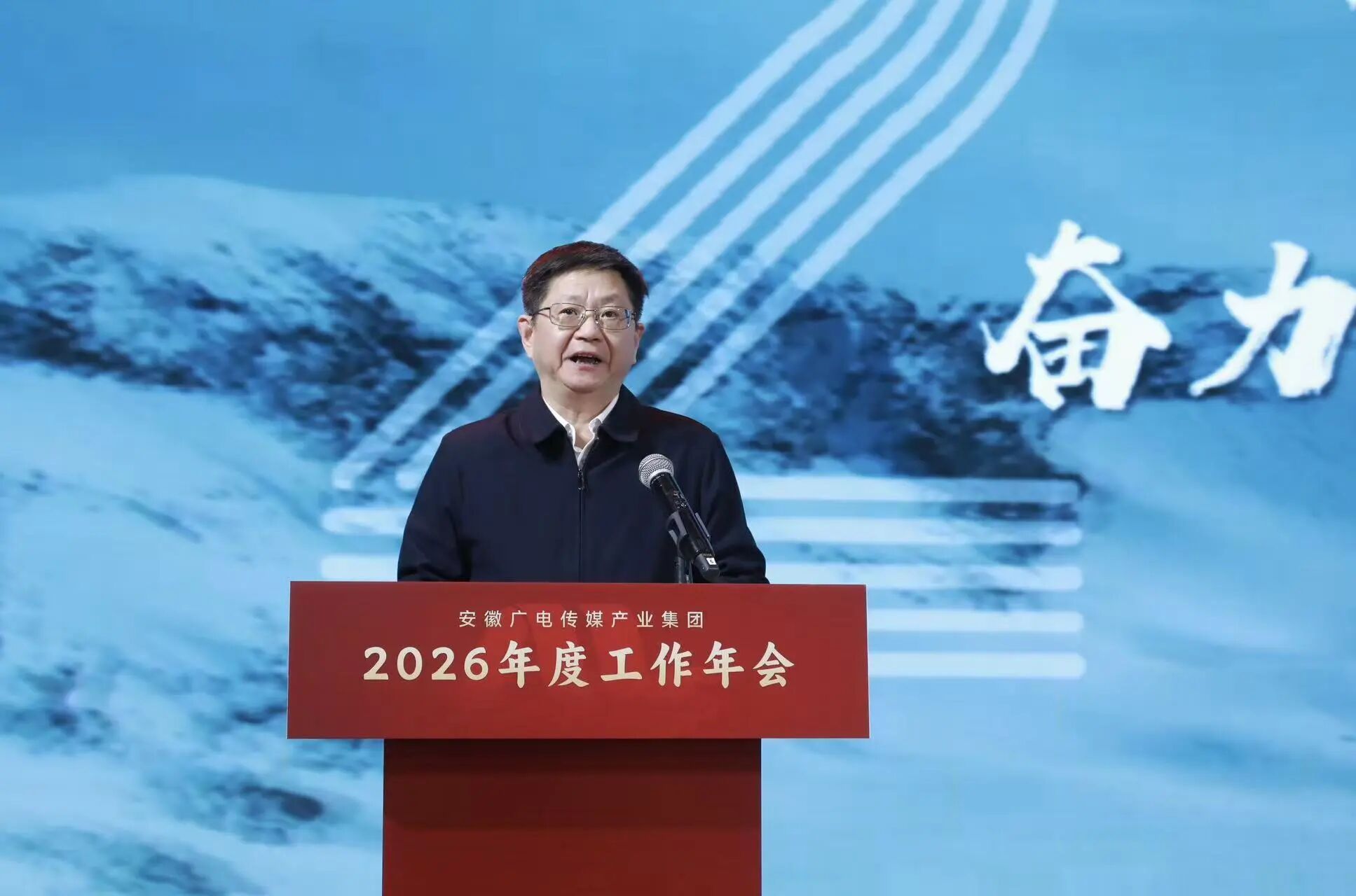 2月13日,安徽广电传媒产业集团2026年度工作会议在合肥市中安创谷全球路演中心召开。集团党委书记、董事长周玉作题为《迎难而上 向新向优 奋力开创集团高质量发展新局面》的讲话。集团党委副书记、董事、总经理苗峰代表集团与二级公司主要负责人签订2026年生产经营及安全生产责任书。集团党委副书记、董事王刘生主持会议并宣读《关于表彰集团2025年度先进集体、优秀个人的决定》,会议表彰了4个先进集体和20名优秀个人。集团党委委员、纪委书记、监察专员陈德友传达省直宣传文化单位党风廉政建设会议精神。集团领导班子成员、外部董事和全体干部职工出席会议。